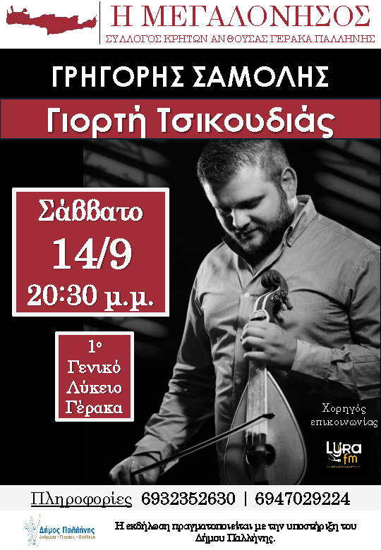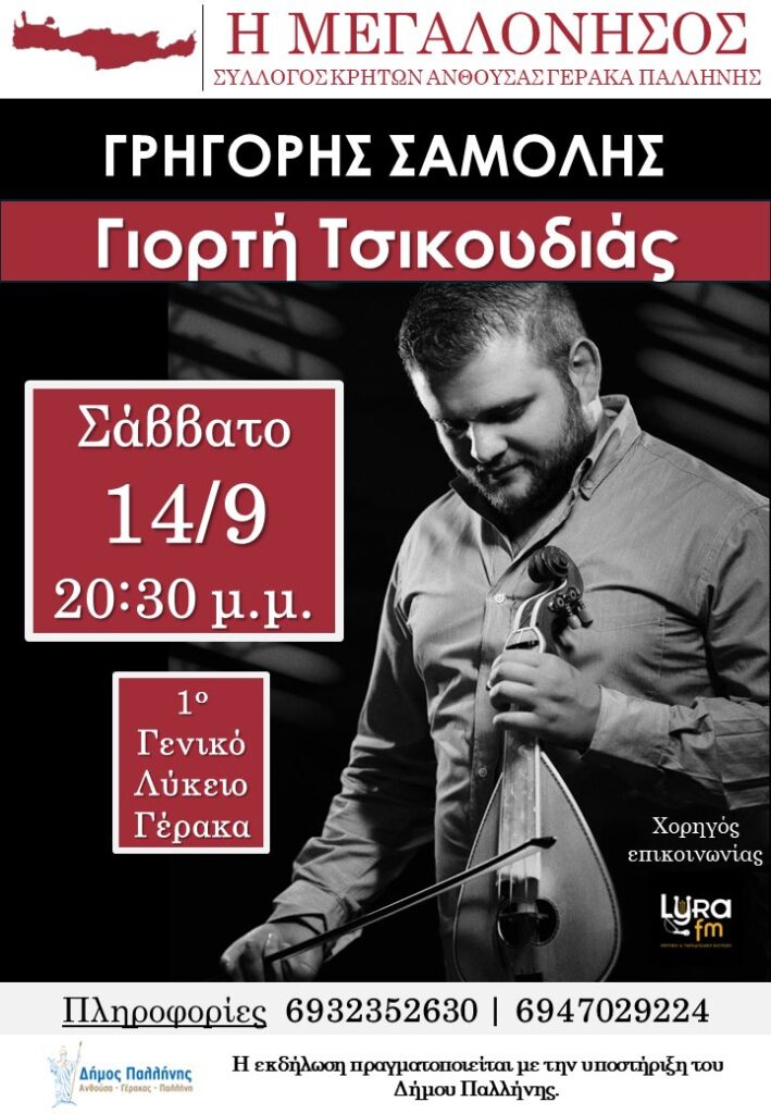 ΓΙΟΡΤΗ ΤΣΙΚΟΥΔΙΑΣ ΜΕ ΤΟ ΓΡΗΓΟΡΗ ΣΑΜΟΛΗ ΣΤΟ ΓΕΡΑΚΑ – ΣΑΒΒΑΤΟ 14 ΣΕΠΤΕΜΒΡΙΟΥ!
