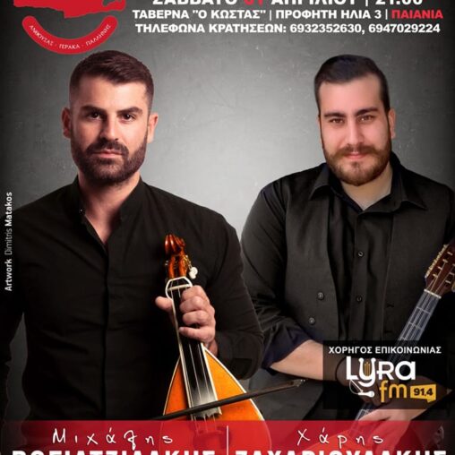 ΣΑΒΒΑΤΟ 01/04 & ώρα 21:00 – ΚΡΗΤΙΚΗ ΒΡΑΔΙΑ ΜΕ ΤΟΝ ΜΙΧΑΛΗ ΒΟΓΙΑΤΖΙΔΑΚΗ – ΧΑΡΗ ΖΑΧΑΡΙΟΥΔΑΚΗ – ΓΙΩΡΓΟ ΚΑΡΓΙΩΛΑΚΗ – ΓΙΩΡΓΟ ΓΕΩΡΓΙΟΥ!